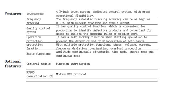 基本機能:連続調整可能な振幅、時間モード、エネルギー・モード、連続モード。